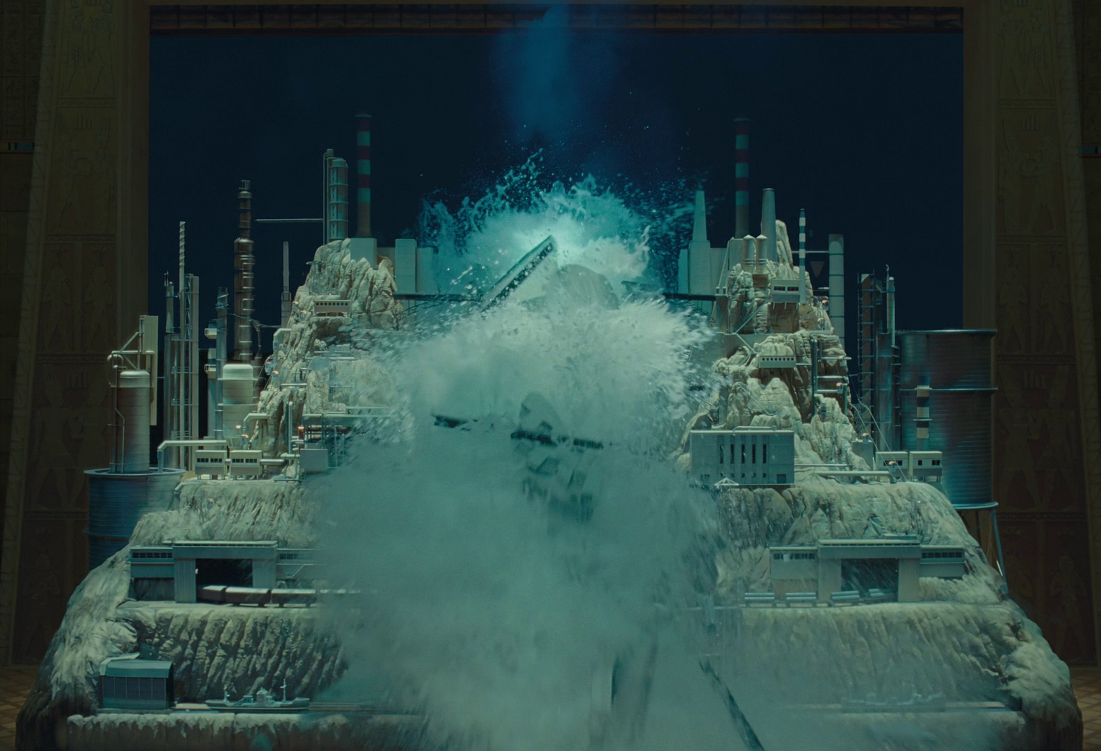In the film The Phoenician Scheme that was released recently, Simon Weisse together with the team in Berlin designed miniatures of clouds, a small airplane, and two versions of the central dam measuring 6.5 meters wide and 4 meters high – one for filming and the other for explosion, which took 10 weeks to build just before the start of shooting.