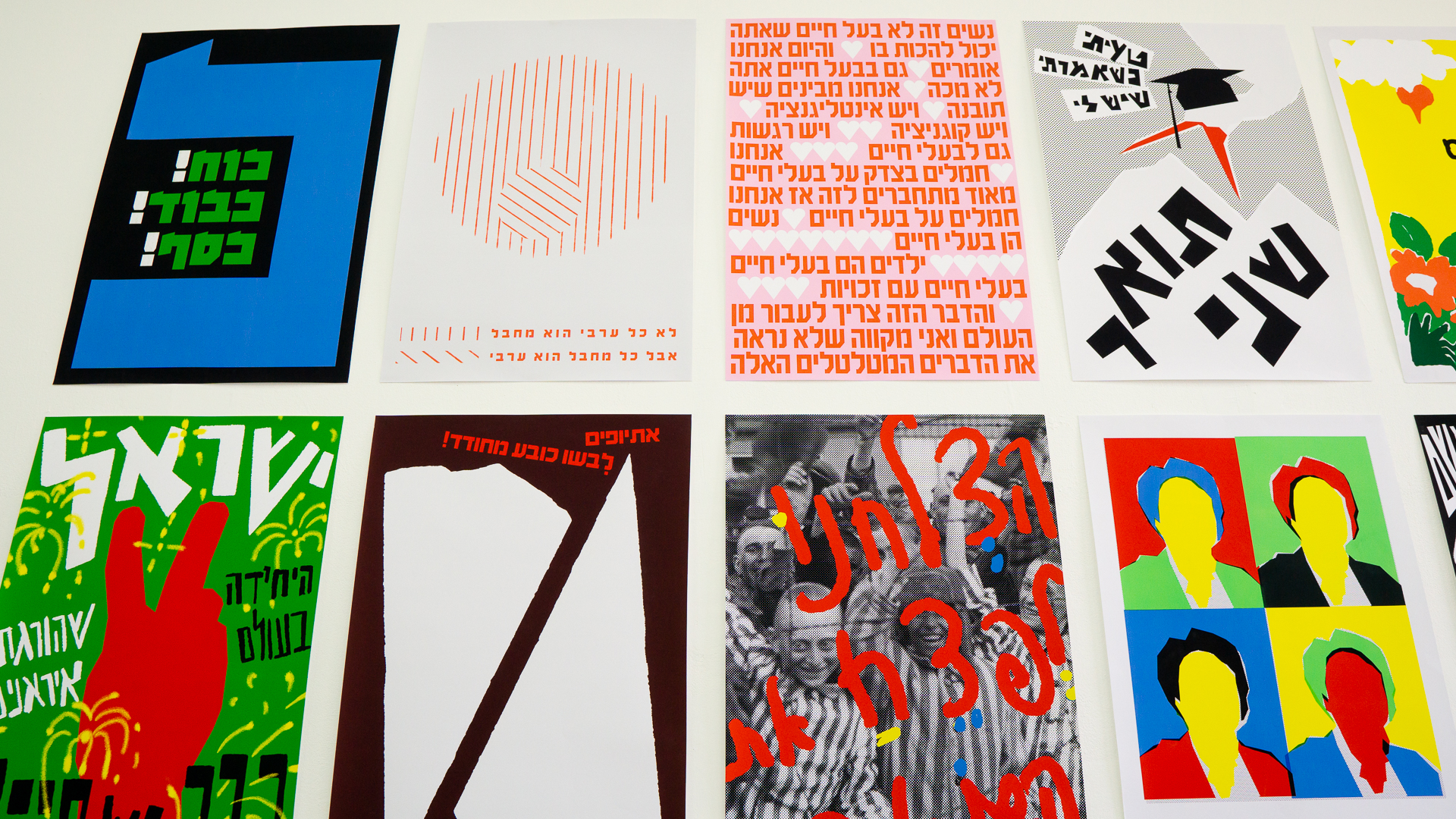 התחלתי בפינה המוארת של הקומה, בחלק שכלל את פרויקט הגמר של מיכאלה שבתאי בשם ׳ישראל היום׳, ולצידו שולחן ספרים מזמין מאוד. הפוסטרים של שבתאי הם מחאתיים, נוקבים, מעלים שאלות. למיטב זכרוני, הפוסטר ׳נשים זה לא בעל חיים שאתה יכול להכות בו׳ זכה לחשיפה במרחב הציבורי, ובתקווה שתהיה איתו פעולת גרילה כלשהי. הם עוסקים בהידרדרות השיח הישראלי ובמציאות הפוליטית, ובין הבודדים בתערוכה שעוסקים במחאה (שפינתה עצמה כדי לקרוץ להייטק, אבל עוד נגיע לזה).