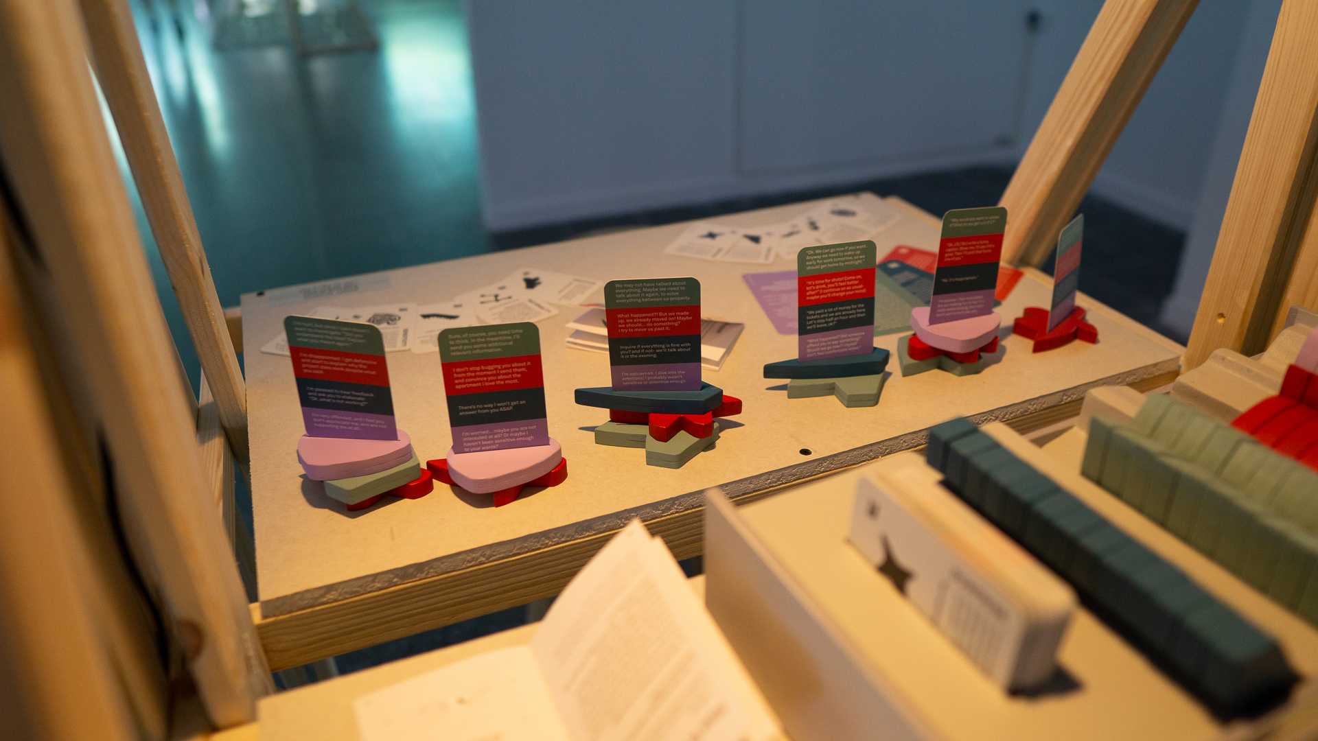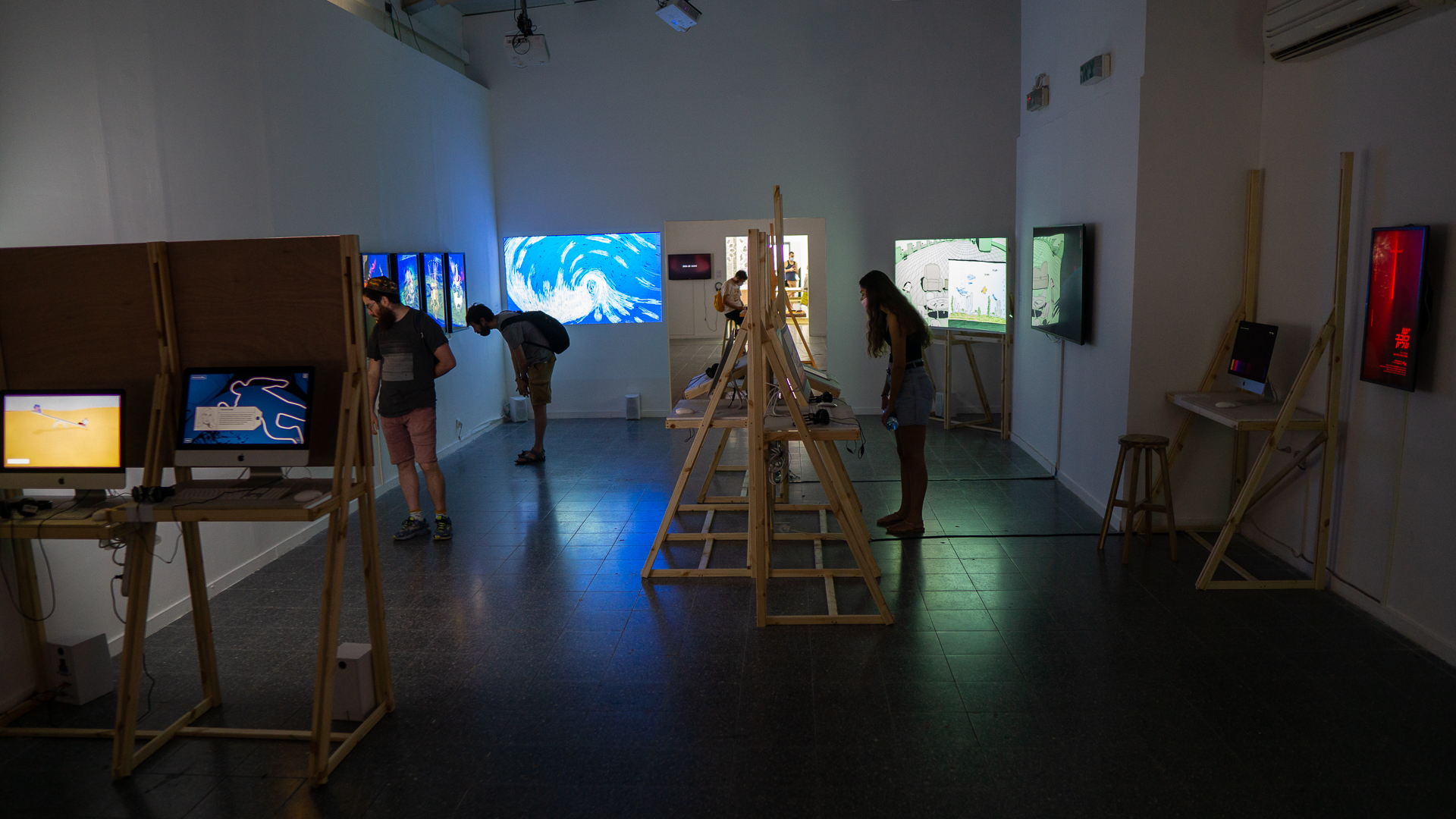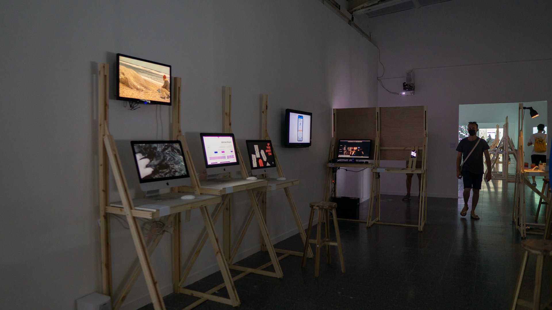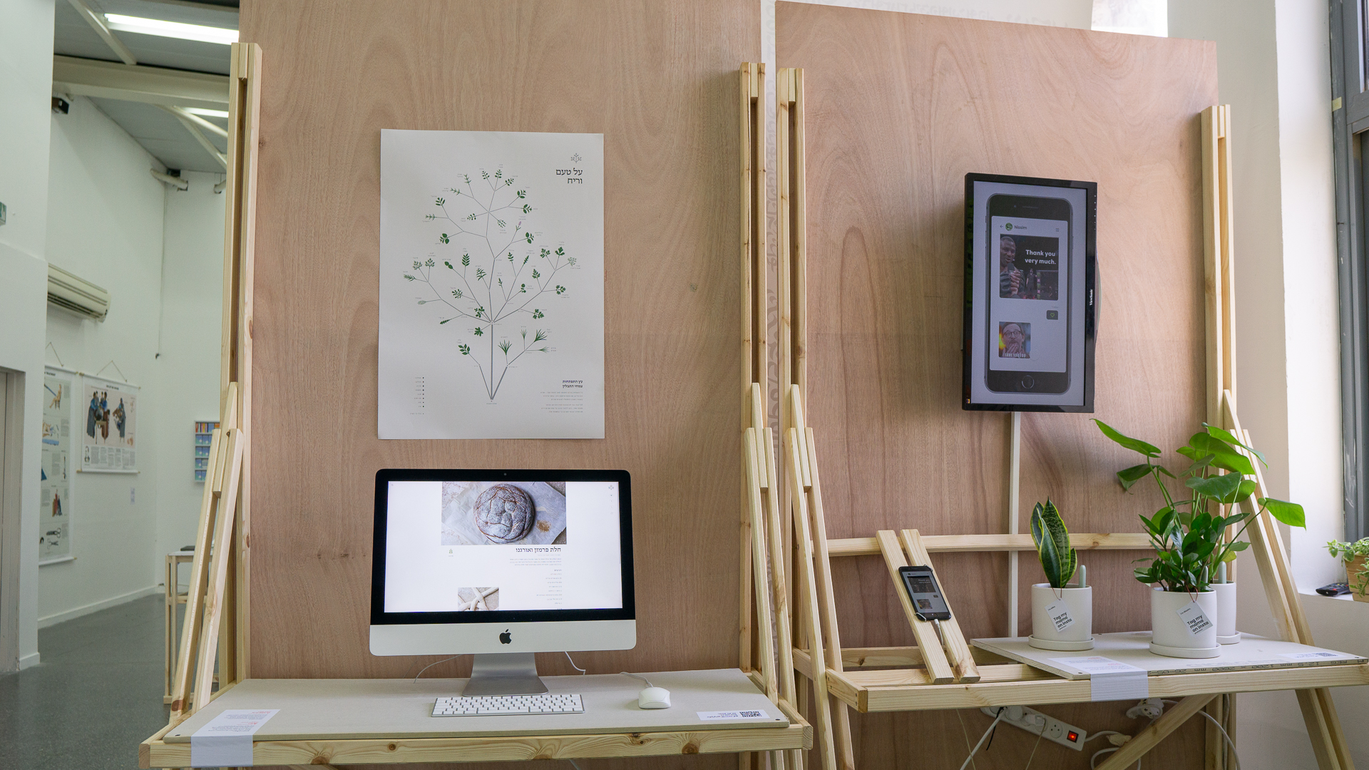 אולי הדבר הבולט והמרכזי ביותר בתערוכה, מיד אחרי כמות הספרים המונחים על שני השולחנות, היא כמות הממשקים שפרוסים על מחשבי המק. מדובר בממשקים שאשכרה עובדים, שעברו תכנות מלא ואפשר להרגיש אותם בפעולה. לא עוד סרטונים מייגעים ומעצבנים של מוקאפים, אלא אסופה של חוויות שטרם ראיתי בתערוכת בוגרים כלשהי. הן פשוט מוצלחות אחת אחת, עם נושאי מחקר מעולים.