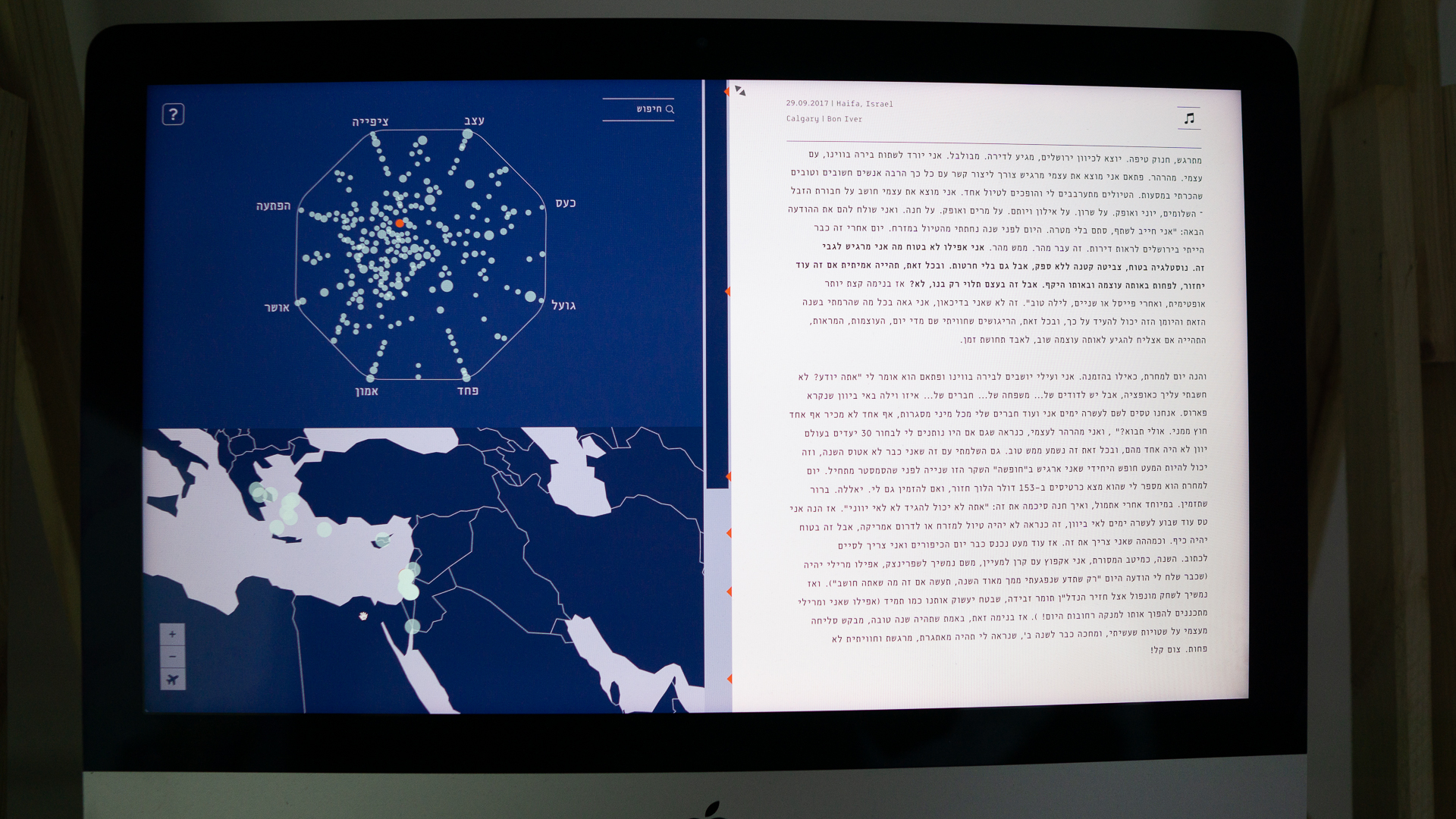 חכו, זה לא נגמר: המעצב גלעד שרייבר יצר את ׳מסע-יומן׳, ממשק דיגיטלי שמציע קריאה לא־כרונולוגית, ומאורגנת ע״פ תוכן, רגש ואווירה עם מודלים מחקריים בנושא שממפים את הטקסטים. אמנם היו עניינים יואיקסים קטנים לפתור (בעיקר הלכתי לאיבוד בניווט), אבל זה היה זניח לעומת חווית הקריאה הפרינטית והפנטסטית שהוצעה על־ידי שרייבר.