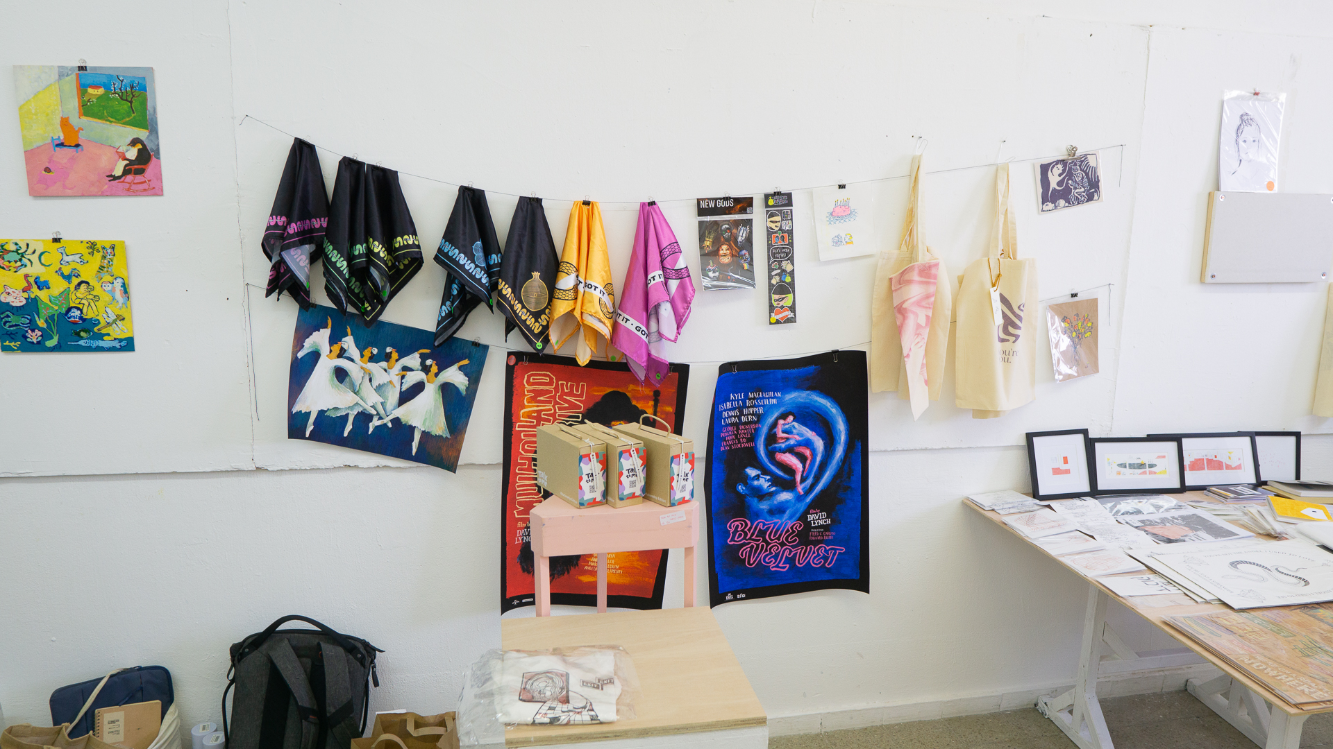 מחוץ לחנות הקטנה אפשר למצוא את הפרויקטים של אותן סטודנטיות שנעשו בשנה ג׳. ההחלטה לתקוע את הקרדיטים בפינת החלל (מצד ימין) ולא לפרוס אותם צמוד לעבודות היא החלטה משונה ועצלנית. היה ראוי לתת את הקרדיט סמוך לכל אחת מהעבודות המוצגות.