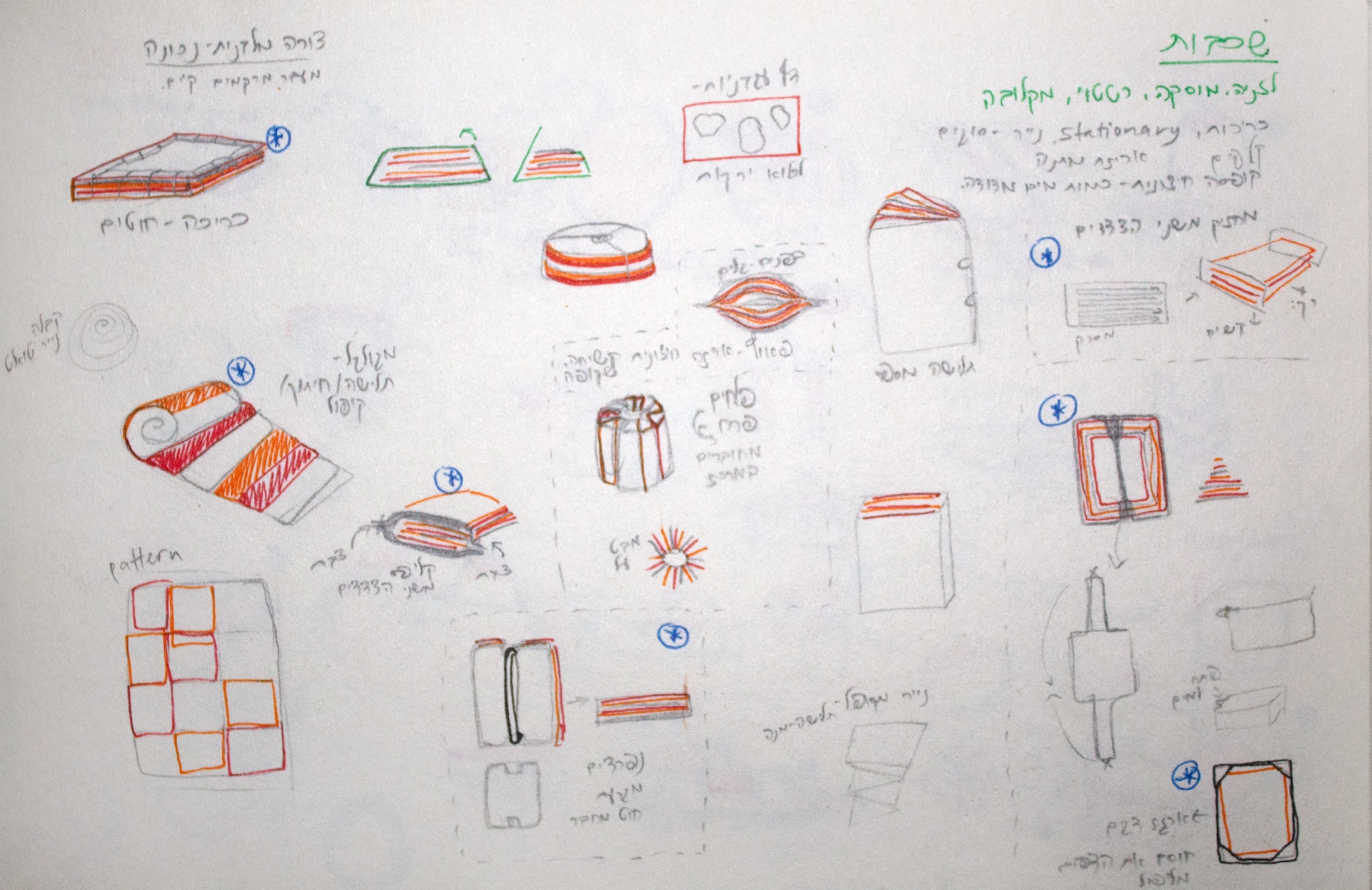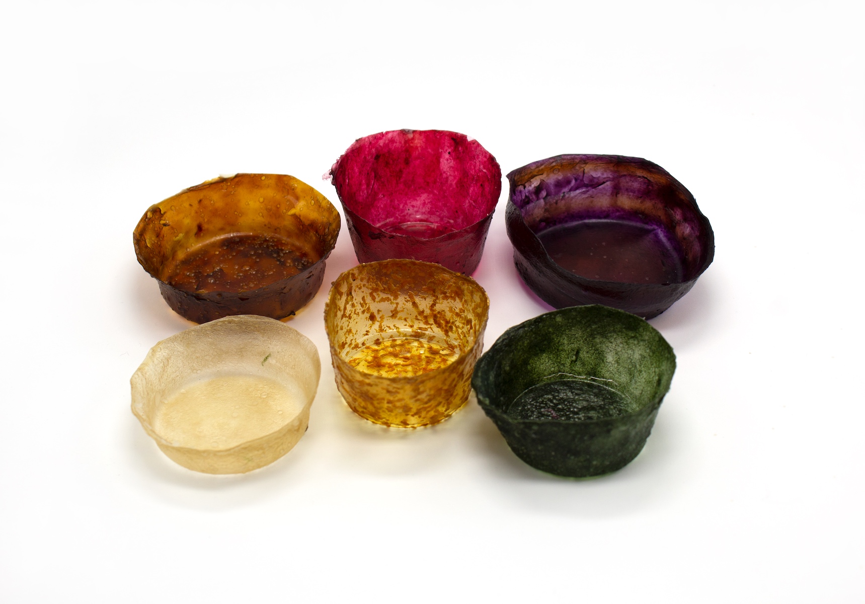 התחלתי בחיפוש אחר חומר מתאים, בהקמת מעבדה ביתית והתנסות במגוון חומרים טבעיים – עמילנים, לציטינים, שומנים, פיגמנטים טבעיים. החומר המוצלח ביותר היה תערובת של אגר (סוכר המופק מאצות), שומן ומים, ואת המתכון דייקתי עד שהגעתי לתוצאה מעניינת – יריעה דקה ושקופה, חסרת טעם ומזינה שמזכירה באופן יוצא דופן ניילון, אך אכילה לחלוטין.