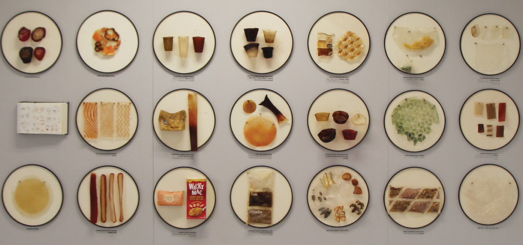 חלק מהמנות הן חיבור בין עטיפה אכילה לבין תוכנה (דוגמת האריזה העשויה רוטב עגבניות ובתוכה ספגטי), וחלקן מהוות יחידה אחת (דוגמת המרק בו כלואים הירקות).
