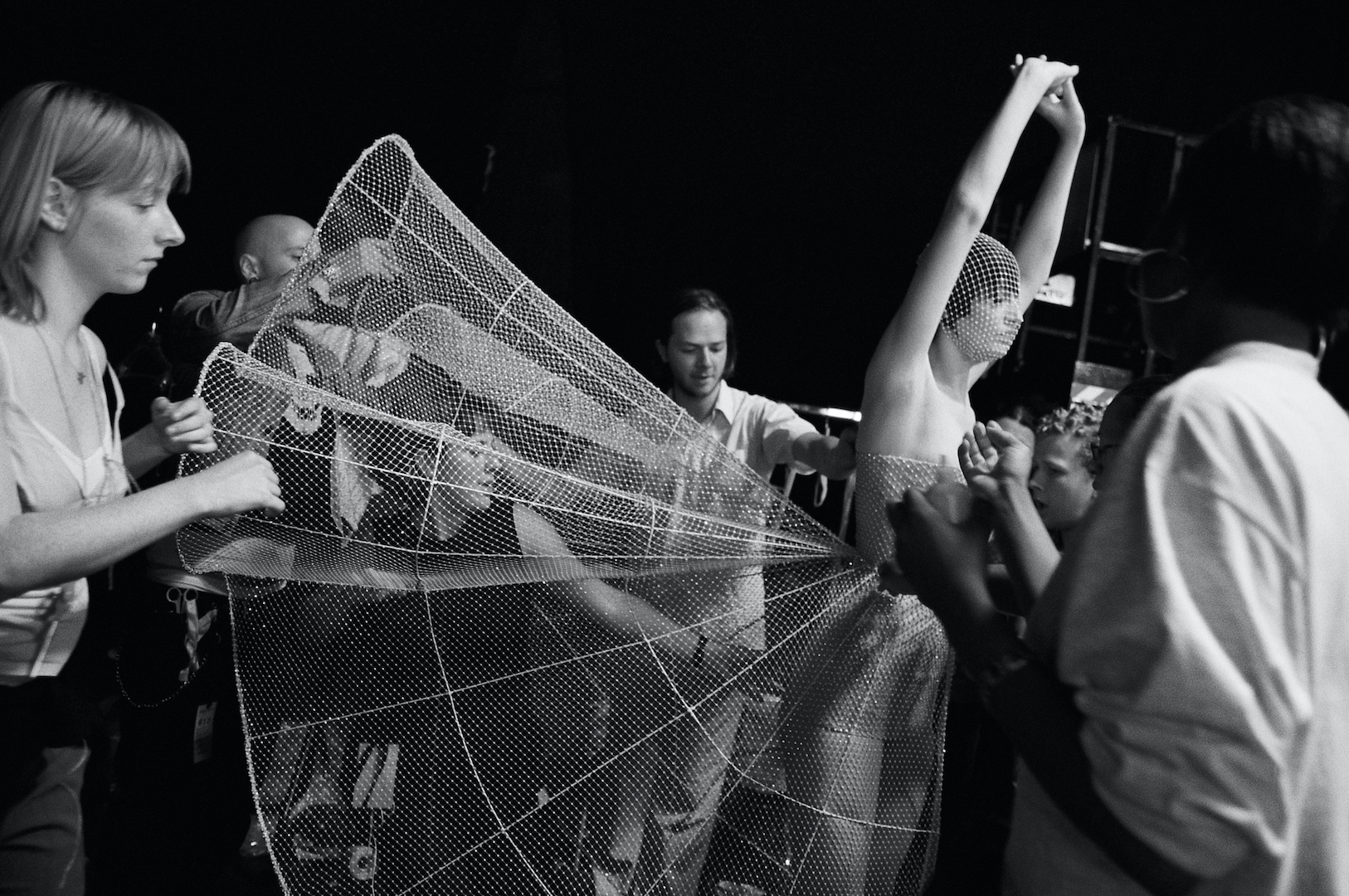 התצוגה נסגרת עם הדוגמנית שלום הארלו העומדת במרכז החלל בשקט בשמלה לבנה אשר מוחזקת סביב הגוף ע"י חגורות עור בצבע חום. שיערה מדובלל על פניה ואינו עשוי לעילה כמצופה. התצוגה מתחילה ובוקעת מהרמקולים מוסיקת אופרה (רקוויאם של ורדי) בעלת טמפרמנט דרמטי מאוד, קולה של זמרת אופרה (קונטר־טנור, הידוע בנדירותו בין זמרי האופרה) בוקע מהרמקולים.