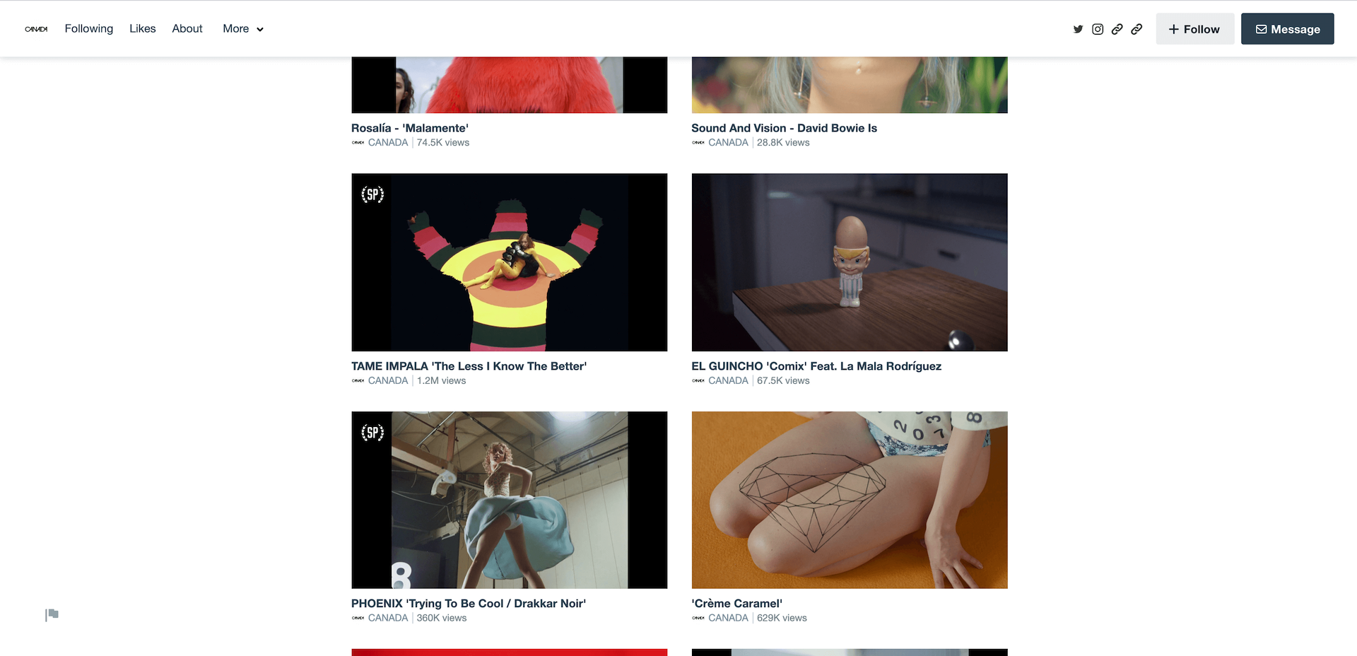 CANADA היא אחת מחברות הפקת הוידאו הכי מעניינות שפועלות בחמש שנים האחרונות. כל וידאו שהם מפיקים הוא בונבוניירה של ממש, וצריך להיזהר לא ללקק את המסך מרוב יופי. עבדו בין היתר עם טיים אימפלה, בקליפ המוכר The Less I Know The Better.