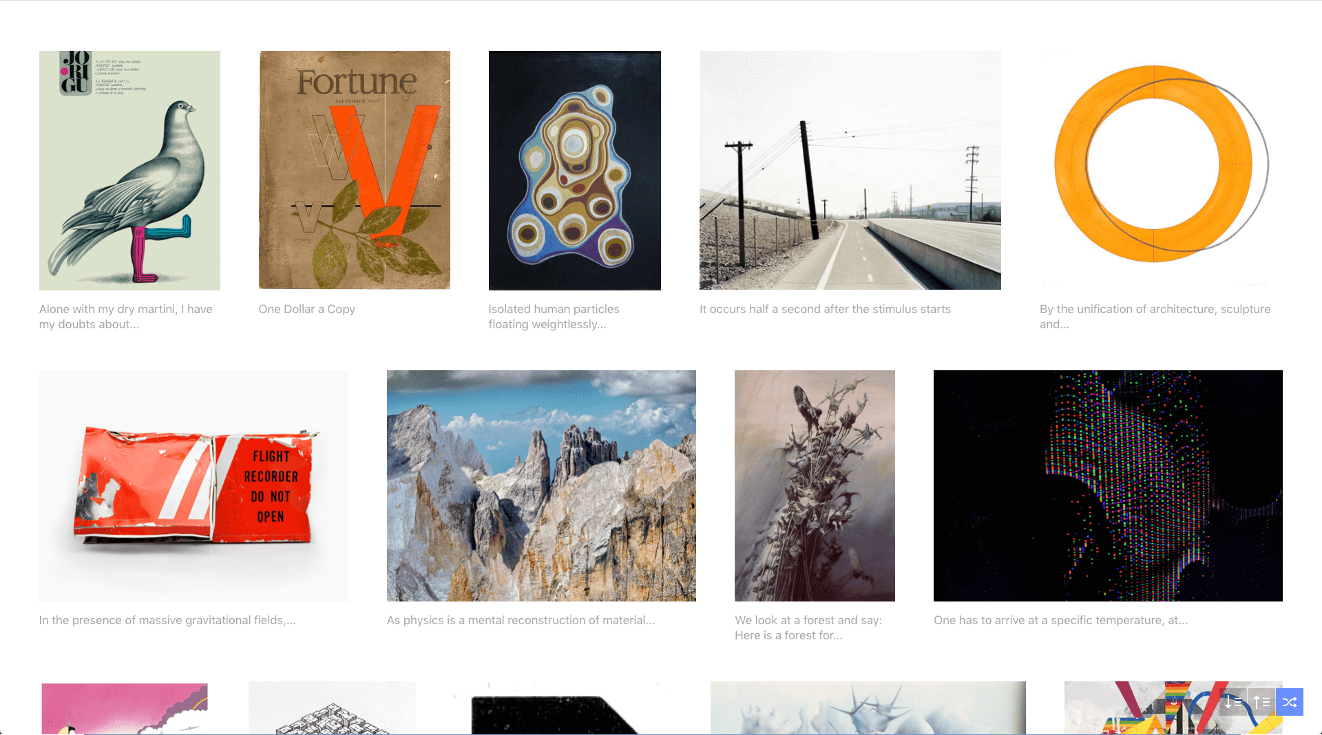 קשה לתאר את האתר הזה במשפט, אבל בגדול – עומס אקלקטי, מרתק ומדהים של אומנויות שונות – צילום, אדריכלות, אמנות פלסטית, ציור, מוזיקה ועוד. הכל ויזואלי ובתמונות גדולות ומרשימות. נפלא ללכת שם לאיבוד.