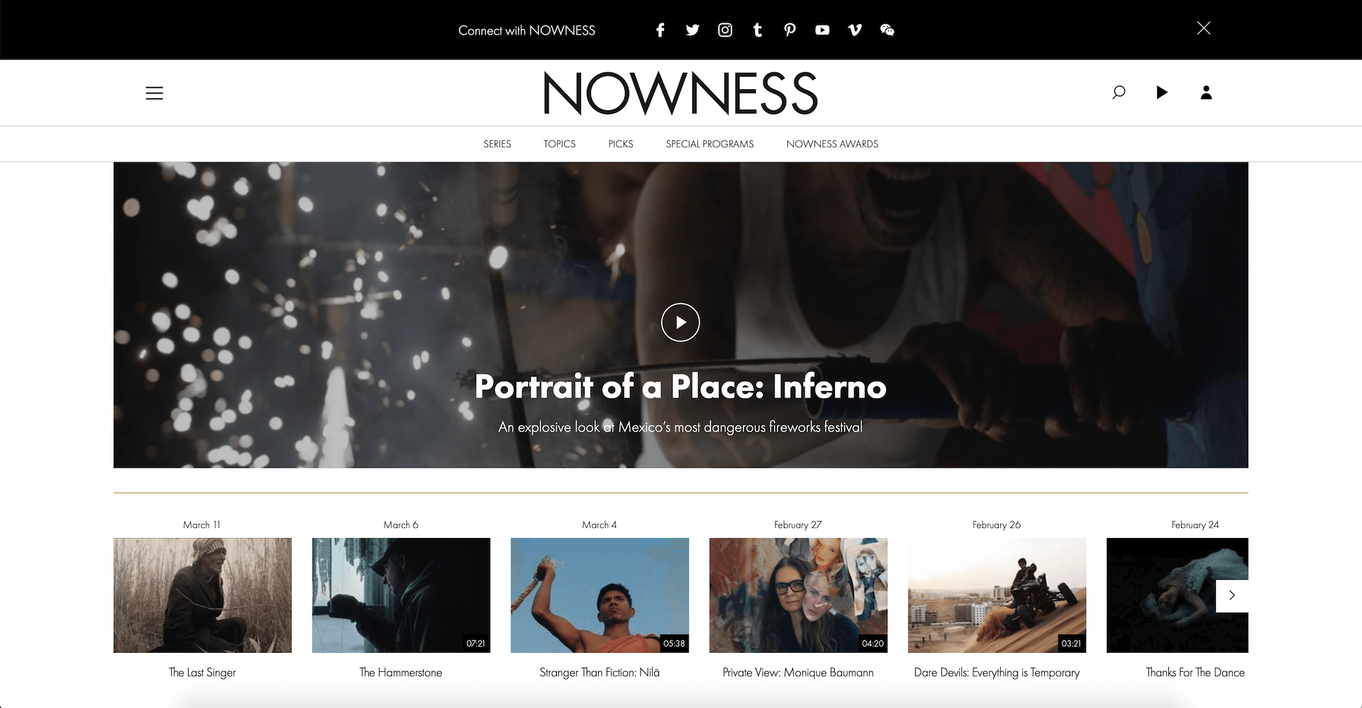אתר שקם ב-2010 וכל כולו אסופת סרטוני וידאו מדהימים. חלקם הפקות מקור של NOWNESS, והרוב מחוץ, בעבודת אוצרות משובחת של צוות האתר. גם אם אתם לא יוצרים במדיום הוידאו, זה יעשה לכם חשק. מדובר לרוב בסרטים של עד 10 דקות, וכמעט כולם פה בונבוניירות מתוקות לחג.