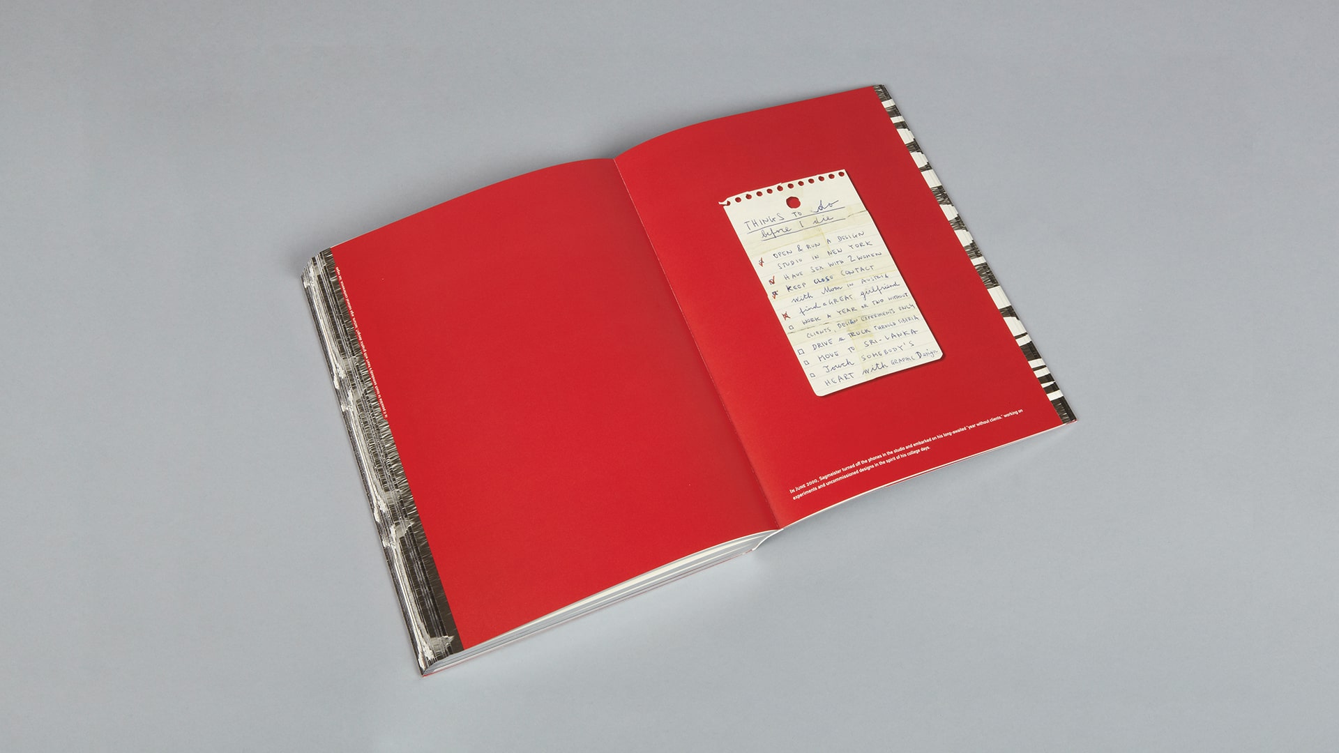 בשנים האחרונות, סגמייסטר הוציא לאור מספר ספרים שמאגדים עבודות שיצר בסטודיו ומחוצה לו, יחד עם הפקות מעניינות (למשל, טיפוגרפיה מחומרים טבעיים). ה־ספר שלו מבין כל ההוצאות עד כה, הוא הספר הנ״ל, שיצא ב־2001 ומאגד את כל מה שעשה (כולל עיצובים שהוא מתבייש בהם).