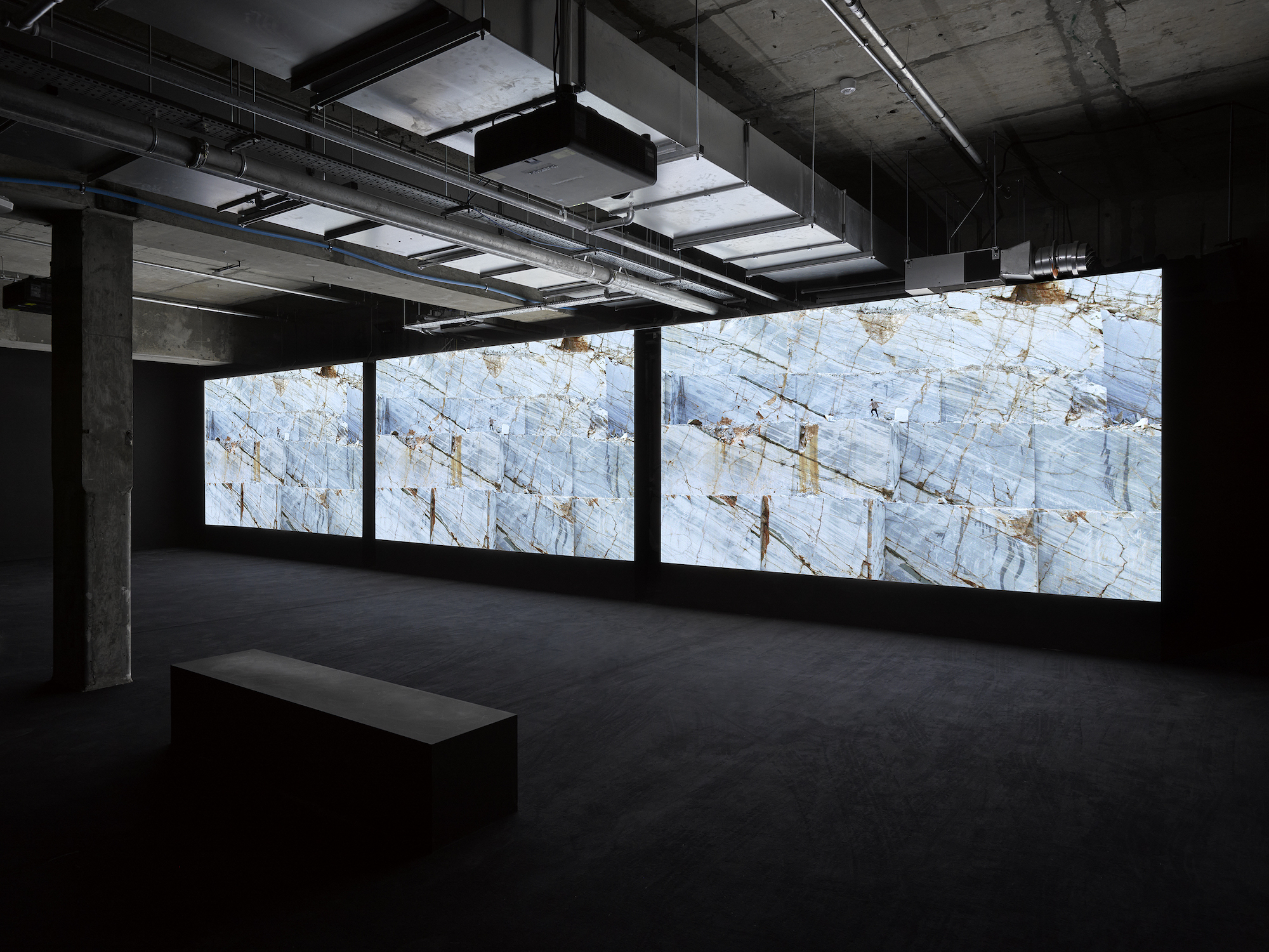 התערוכה נפתחת בבום, לא בום מטאפורי אלא בבום ממשי, עם עבודת וידאו כפולה של ריוצ׳י קורוקווה [Ryoichi Kurokawa] הניצבת משני צדי החלל ומציגה זוג מרחבים וירטואלים, אחד אורבני ואחד טבעי, מתפרקים לפיקסלים ומתמוססים לחלל בעריכה רצחנית והלמות תופים. החוויה הזכירה להיות לכוד במשחק סימולציית מלחמה בזמן שזה מתפרק לחלקיקים, והמסכים הכפולים רק הגבירו את תחושת ההצפה והפרעת קשב שהוידיאוים יצרו. זאת הייתה פתיחה עוצמתית מאוד שנתנה את הטון לשאר התערוכה והבהירה את המרחב בו היא פועלת – האינטרנט, ההצפה החושית, הדיגיטלי שבולע את הטבעי.