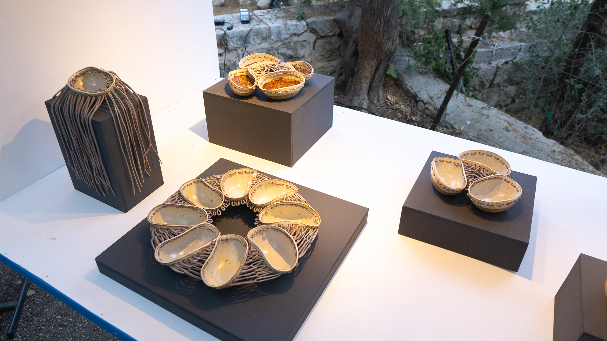 העבודות מעניינות כשלעצמן בנפרד, אך קשה היה להבין את הקונטקסט ביחס ליתר החללים. כדי לפענח את החידה, ניגשתי אל הטקסט האוצרותי שבו נכתב: ״בתערוכה יוצגו רישומים, פסלים ועבודת וידאו שהם פרי מחקר חזותי ואישי של האמנית בנושא התמכרויות לסמים בכלל ושימוש באופיאטיים בפרט״, ועכשיו תחברו את זה בכוח לבריחה ואסקפיזם, והנה קיבלתן הקשר.