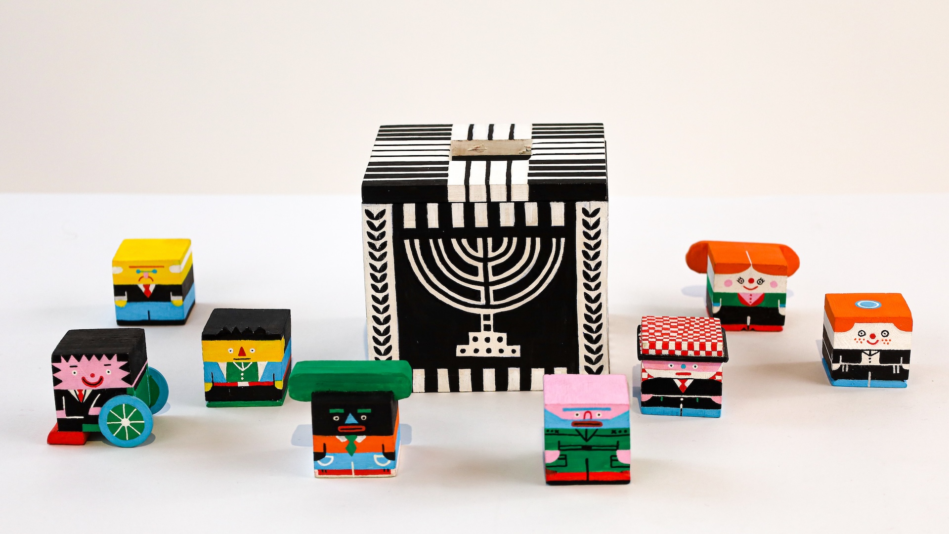 מיקה ירושלמי עיצבה ואיירה את פרויקט הגמר "צעצועי דמוקרטיה״ במכללת שנקר. ערכים דמוקרטיים הפכו לצעצועים אינטראקטיביים – שילוב מפתיע בין נגרות, איור ואזרחות.