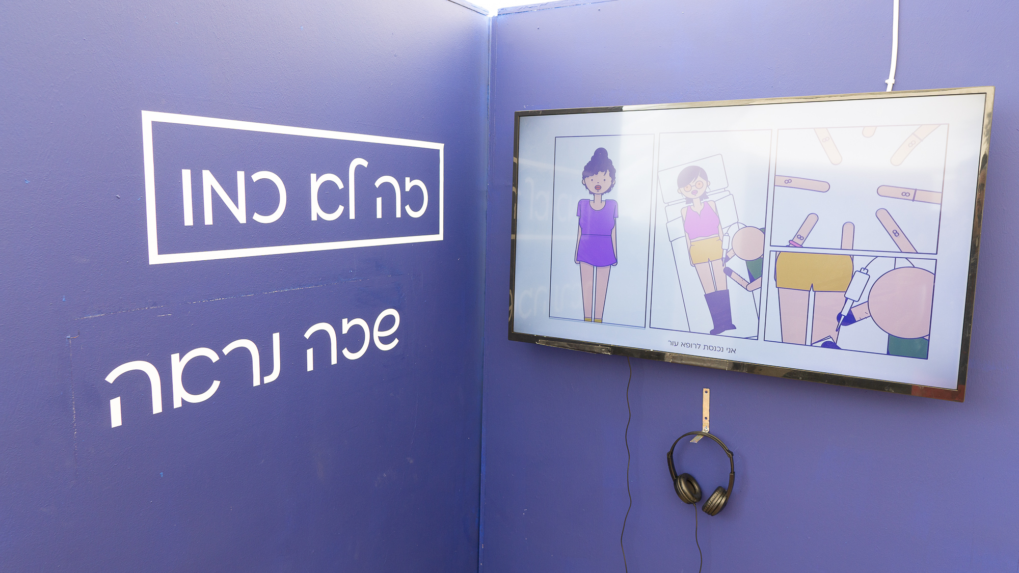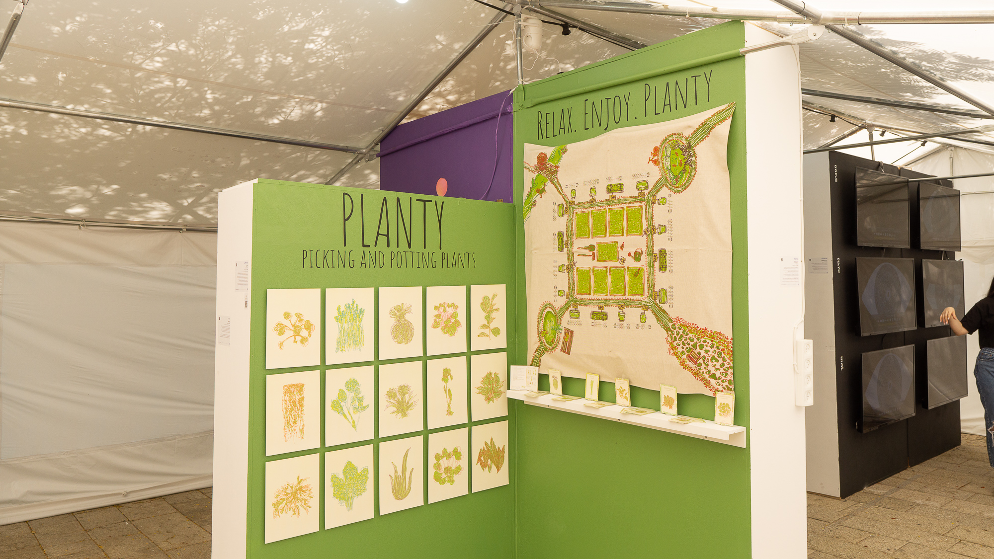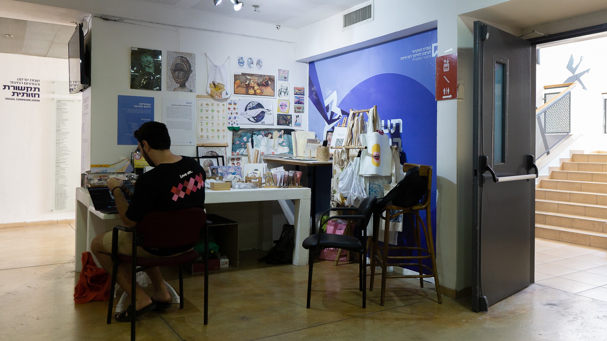 עבודות הסטודנטים והסטודנטיות נדחסו להן בסוכת אבלים בגלל סיבה אחת: העדפתו של המרכז האקדמי ויצו חיפה לתת יותר מקום ל־35 פרויקטי הגמר של המחלקה לארכיטקטורה (שיא בתולדות ויצו), שהשתלטה על קומותיה של המחלקה לתקשורת חזותית. בואו נודה על האמת – היא רווחית יותר, ארוכה יותר מהמסלול של תקשורת חזותית, ולכן נמצא פתרון מביך ומבזה לנפנף את הפרויקטים של המחלקה החוצה, במקום נגיד, לחלק את הזמנים של שתי התערוכות שלא תהיינה במקביל. על זה לא חשבו, כנראה.