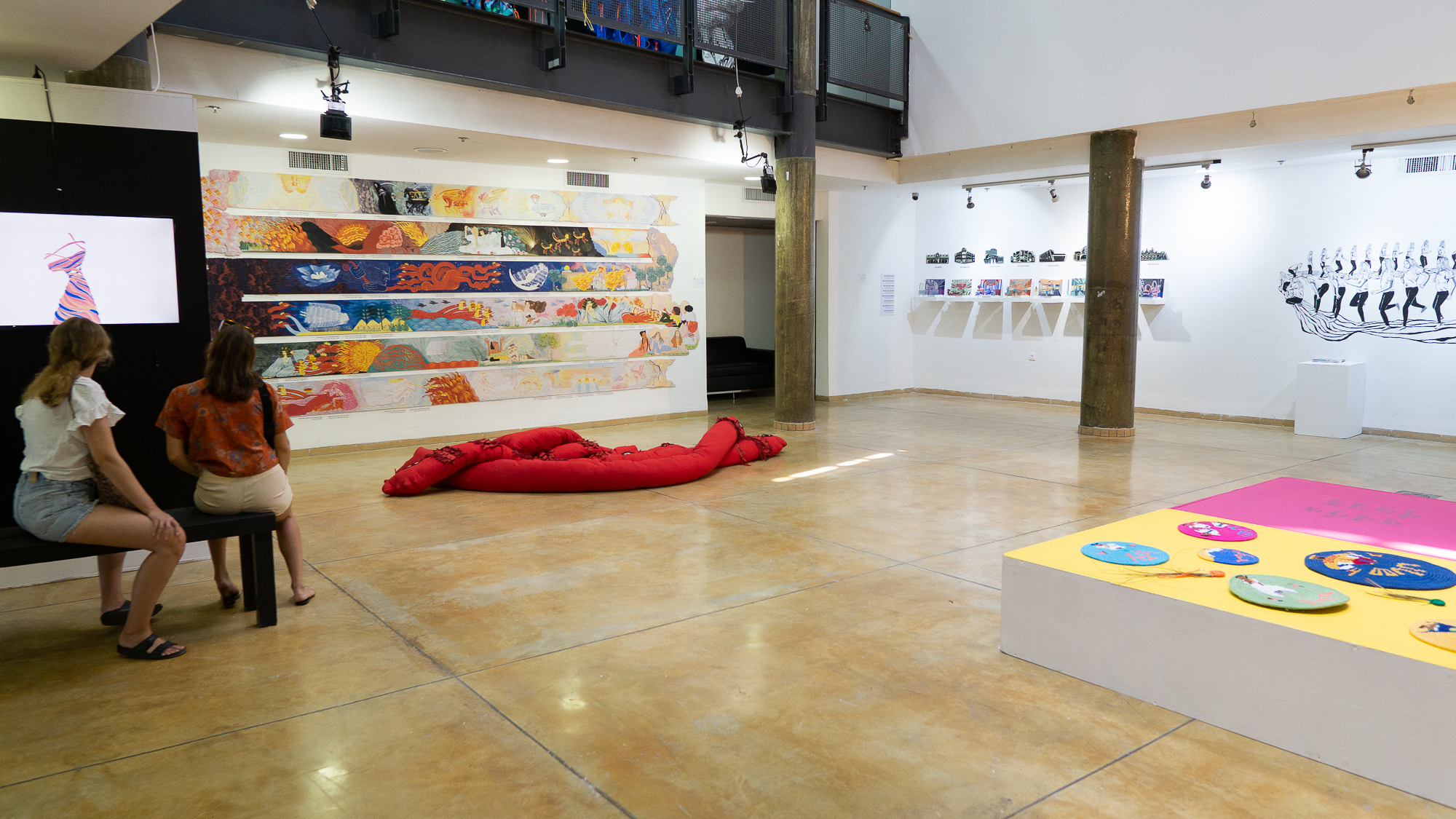 חלל הגלריה המרכזי במרכז האקדמי ויצו חיפה לא מרמז על האסון האוצרותי שעתיד להגיע בעוד מספר דקות. פרויקטי הגמר מפוזרים על הקירות, במרחק סביר זה מזה, עם שטחי תצוגה לא פרופורציונאלים – מה הסיבה שסרט הממוקם בתוך מסך טלוויזיה צריך לקבל שטח של 4-5 מטר קיר? למה פרויקט גמר שמסתכם בספר מקבל שטח דומה?
