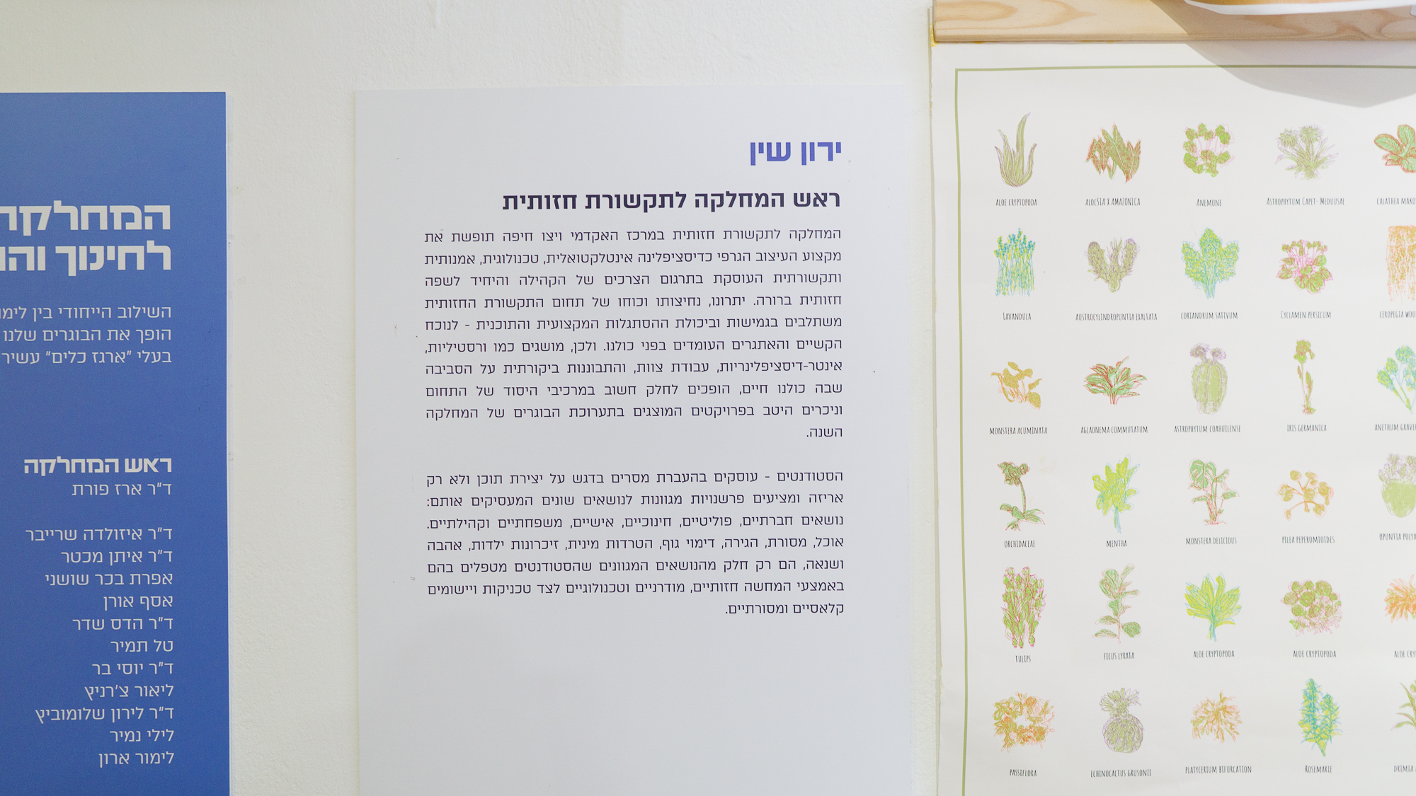 ״מבנה המוסד שלנו לא גדול ולא משופה בשטח תצוגה רב. כדי לעשות ״סדר״ בראש של המבקר בתערוכה, הוחלט שכל מחלקה מציגה בקומה שונה ושאנו נפתח את התערוכה – בקומת הקרקע. מאחר שאנו מחלקה גדולה היה צורך להרחיב את שטח התצוגה לכיכר ולבנות אוהל המחובר בשרוול לקומת הקרקע ולחלק את העבודות בין האוהל לבין קומת הקרקע (היכן שנמצאים המשרדים והקפיטריה של ויצו).