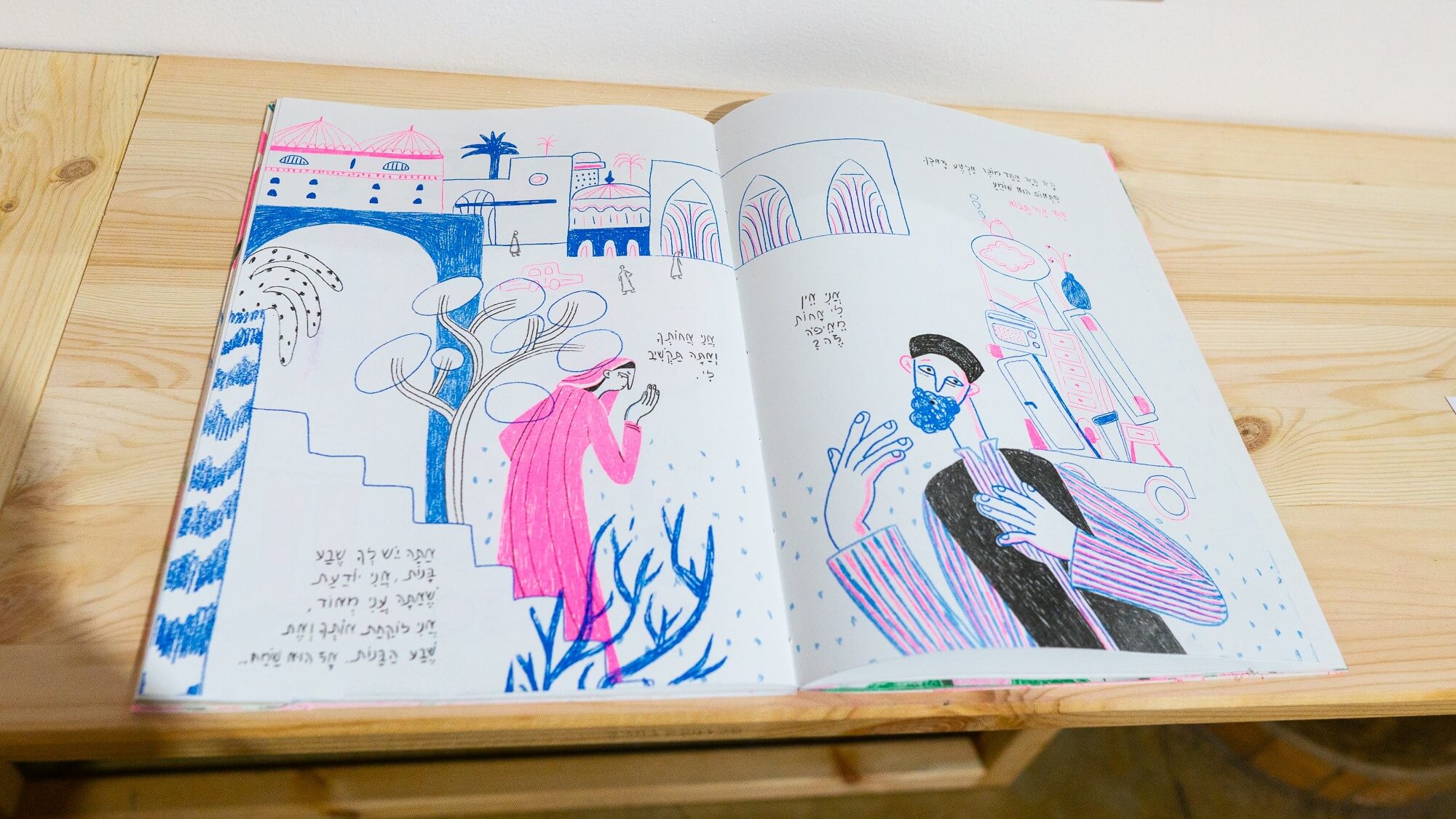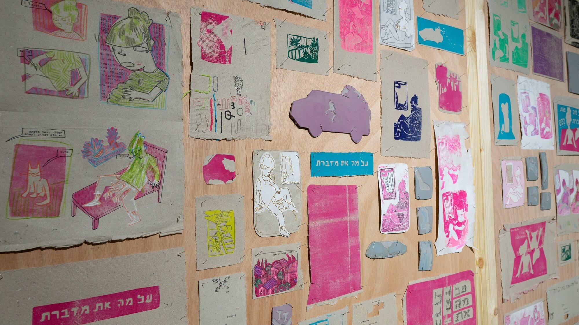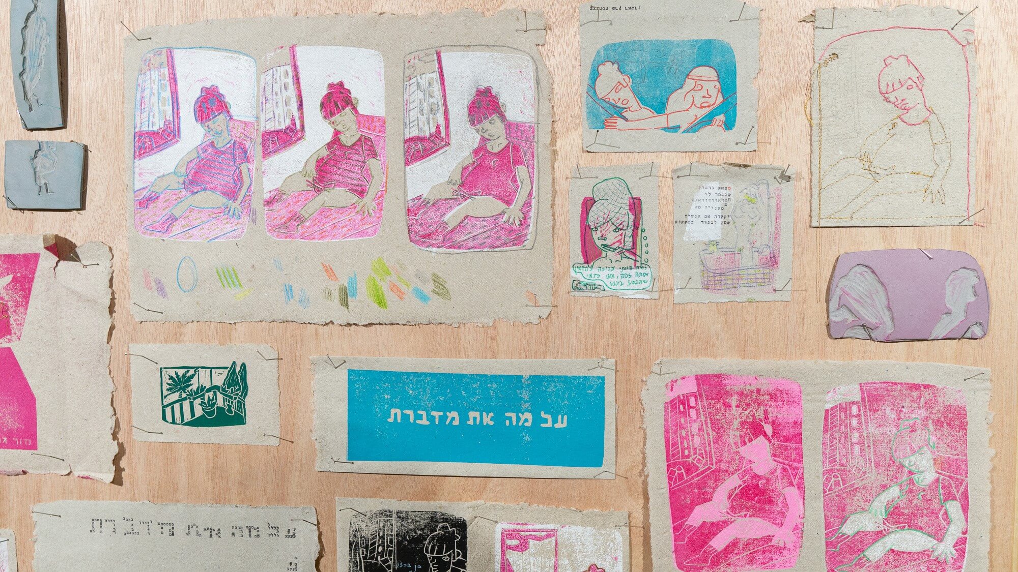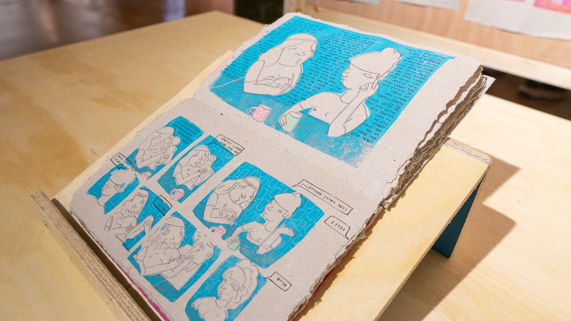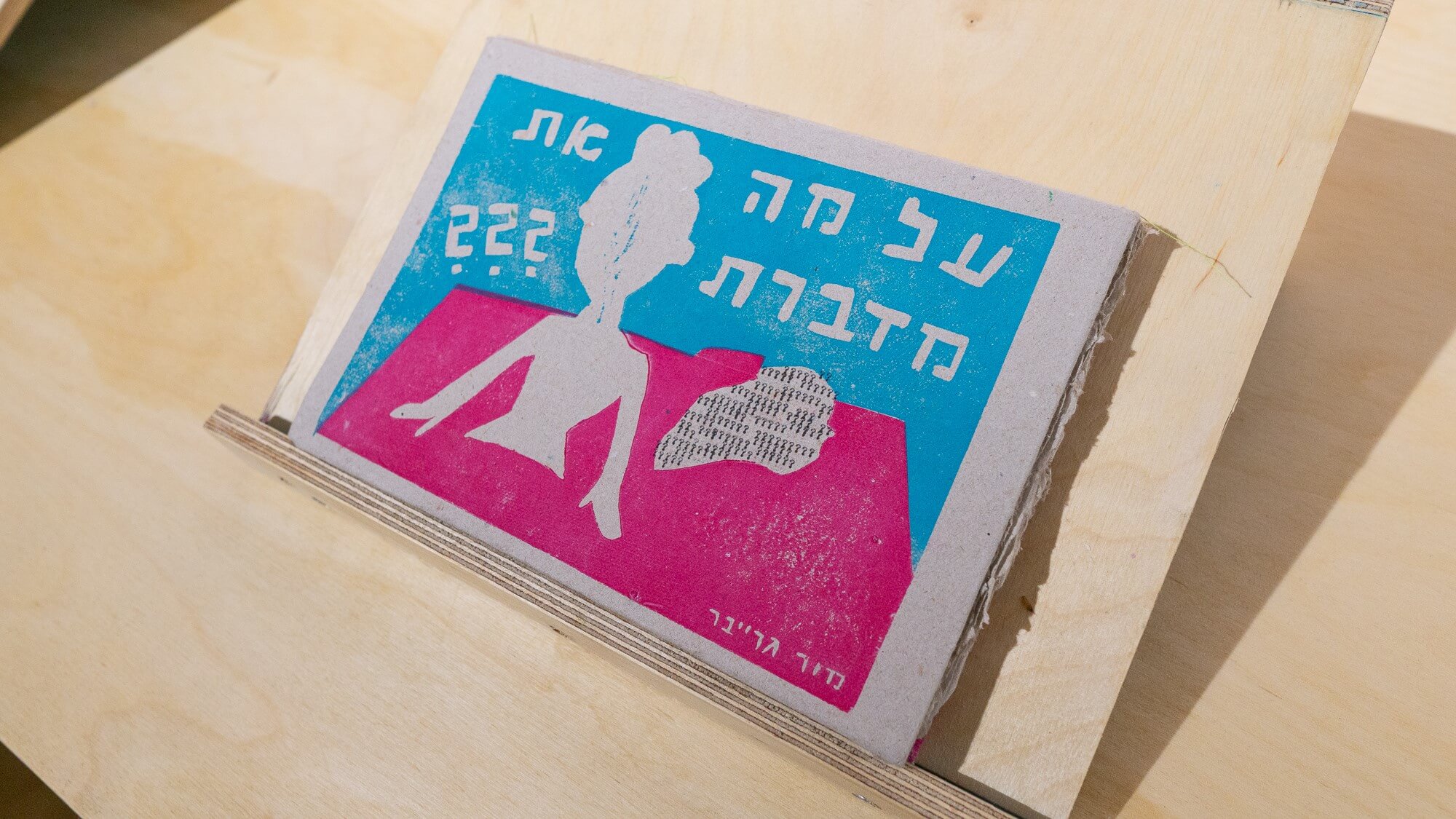 המאיירת מור גרייבר איירה בלינולאום את ׳על מה את מדברת?׳ ספר ידני לחלוטין, כולל שימוש במכונת כתיבה וייצור הניירות עצמם מגלילי נייר טואלט וקרטוני ביצים. הכל פה מנומק עד הסיב הקטן ביותר, והתוצאה מכניסה לעולם הויזואלי שיצרה.