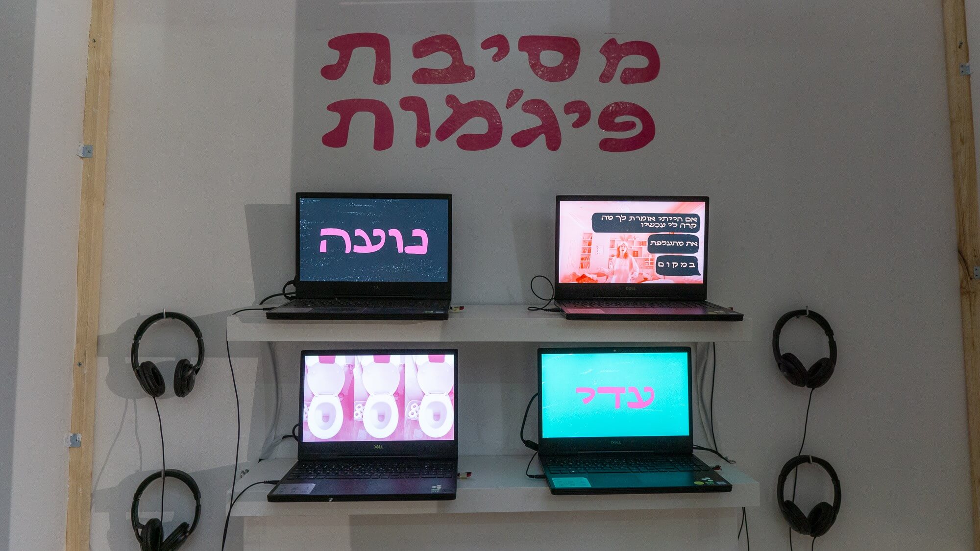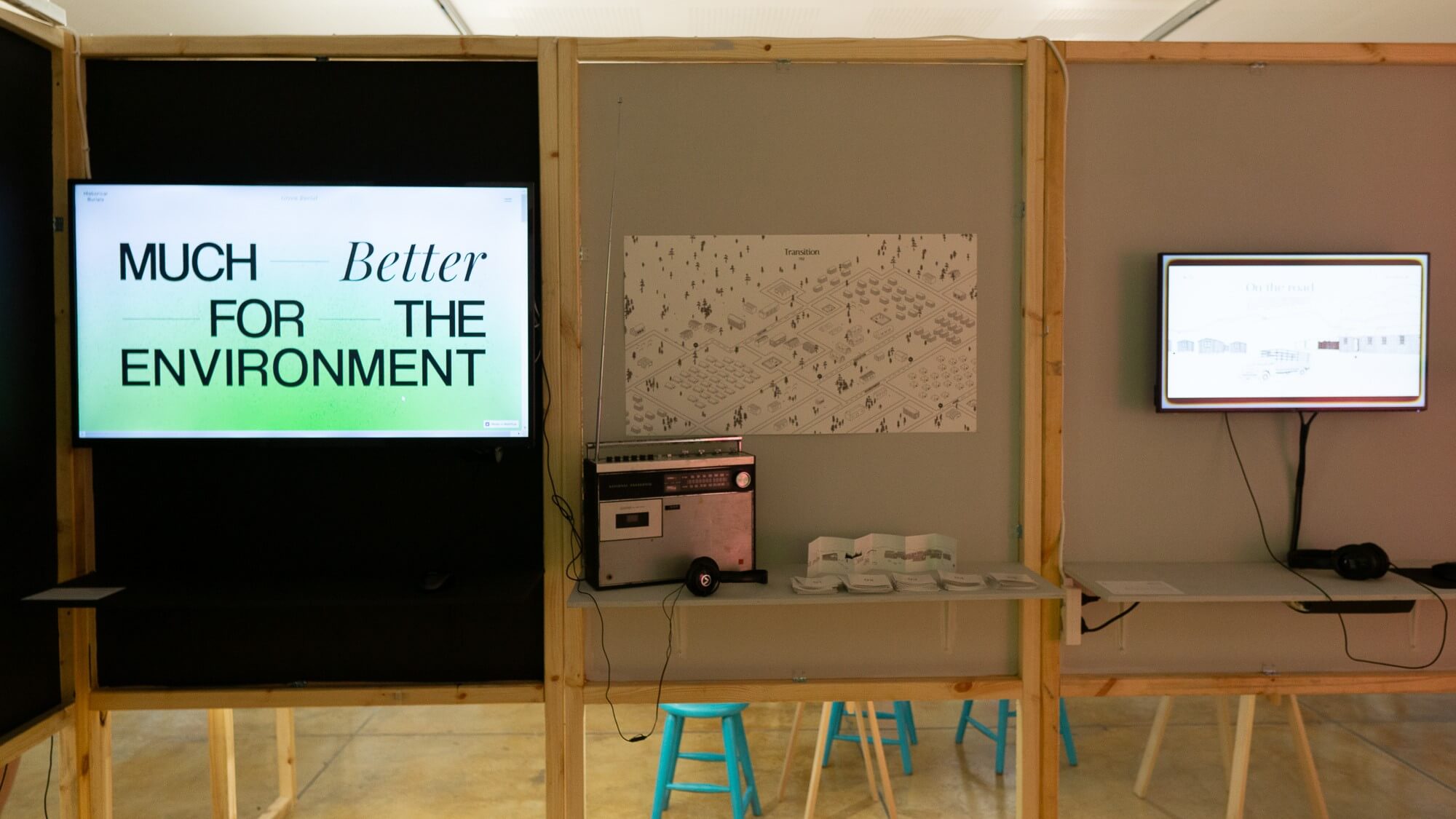 אז מה קרה במקום? דחסו אותם בצפיפות איומה כמו סרדינים בלובי הכניסה. כמה דחוס? ברמה שלא הבנתי איפה פרויקט אחד מתחיל ואיפה השני נגמר. בחלל נבנו קירות עץ זמניים שהיו על תקן חוצצים, ובמקום לרכז את הפרויקטים לפי נושאים (כמו שעשו בזמנו בתערוכת בצלאל בתדר), שגב החליטה לנסות לייצר מקצב שאמור לעבוד בין העבודות, אבל בפועל דיסהרמוני להחריד.
