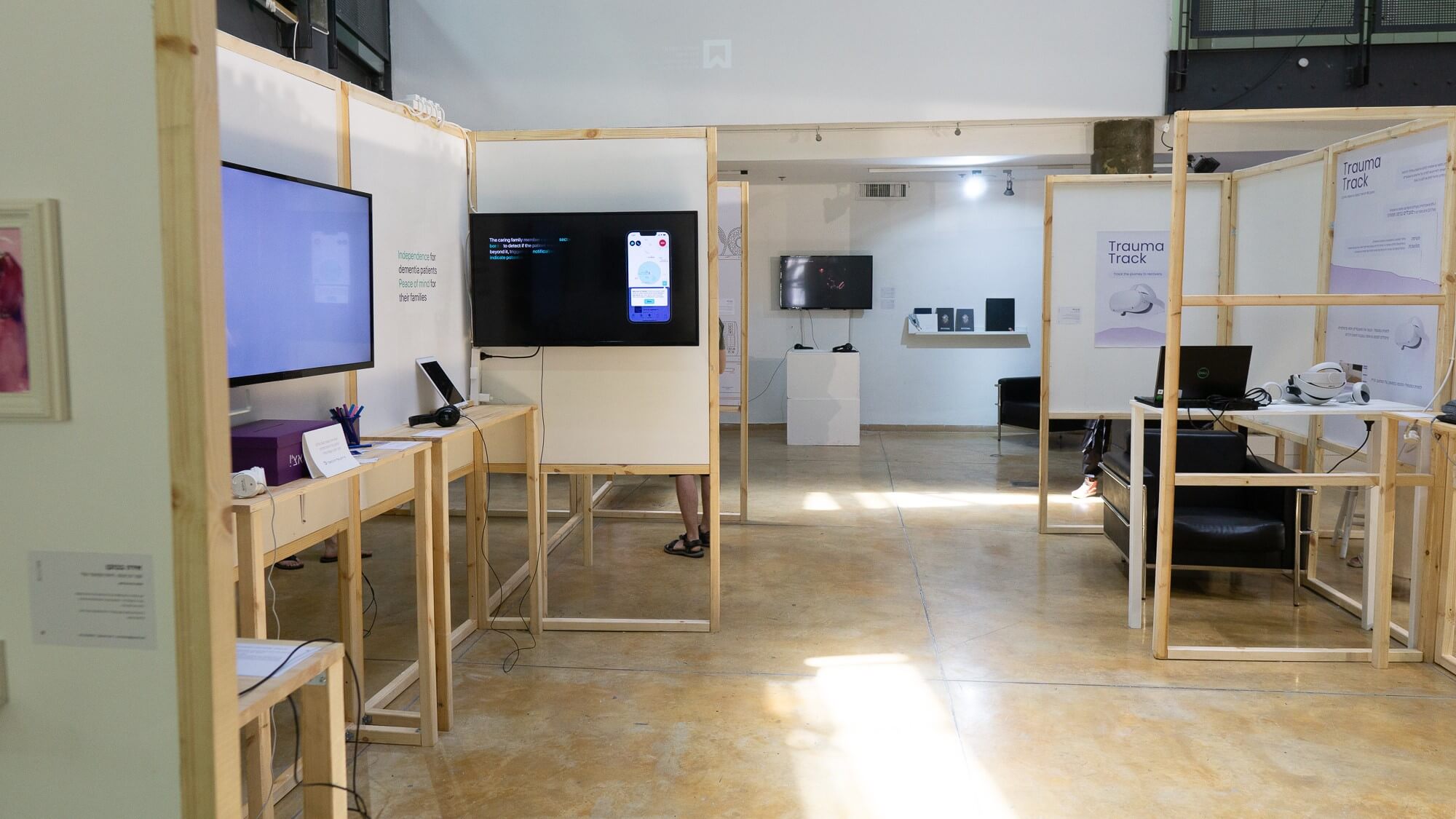 בגזרת האינטראקטיב בלטו לטובה שני פרויקטים נהדרים במיוחד: הראשון, בקומת הלובי ממוקם הפרויקט של המעצב צוק עין-אלי, ׳TraumaTrack׳, מערכת טיפולית המשלבת משקפי מציאות מדומה וממשק מסך. המערכת נועדה לטיפול בפוסט טראומה ע״י חשיפה ממושכת בסביבה בטוחה. האלמנט הקטן שבחר, חשיפת הסביבה בזמן הטיפול, הוא מבריק ונותן וודאות, במקום הדיסאוריינטציה המוכרת כשמרכיבים VR על הפנים.